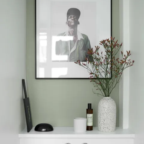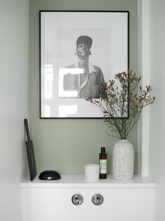 Hazy green V447 Serpentine gives the bathroom a fresh look.