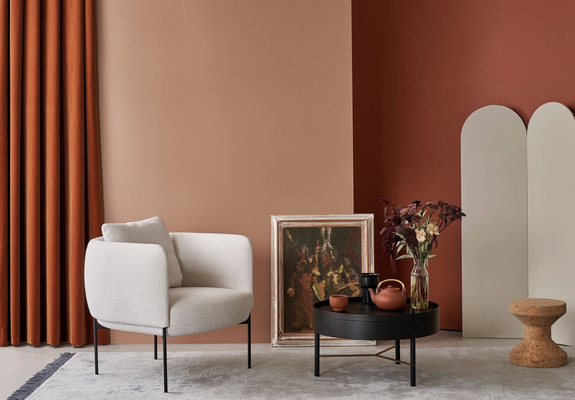 Trend analyst and designer Niina Bruun chose Color of the Year N405 Terracotta for the accent wall in the living room.