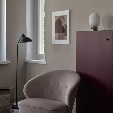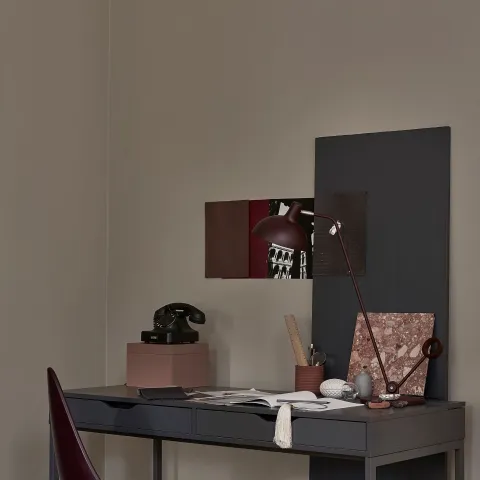"The space had previously had light gray walls, but they felt too cold and pale. The idea for using darker tones came from a recent trip to Italy, where I was particularly drawn to the reddish tones and stone and marble surfaces that are widely used in Italy. The strong but stylish V484 Ajopuu and Y500 Wrought Iron from the Minerals color collection were selected for the workstation corner."