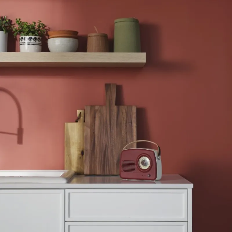 Light hits the plastered red walls and makes them glow. The intense colour of red soil, burnt clay and warm spices.
