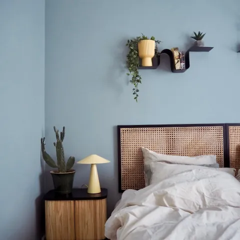 A colour that leads to sweet dreams. An easy and dreamy blue with a hint of grey is the perfect choice for bedroom walls.