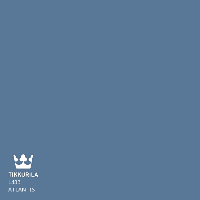 Atlantis reflects the deep blue of the ocean and the mystery of a sunken island. This calming dark blue, located in the middle of the blue palette, helps to create a hazy atmosphere in the room.