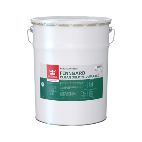 • Finngard Clean-julkisivumaali for the plaster surfaces. Finngard Clean-julkisivumaali is a water-borne, EPD-verified, silicone resin paint that repels dirt and water due to its highly hydrophobic surface, keeping the structure clean and dry.